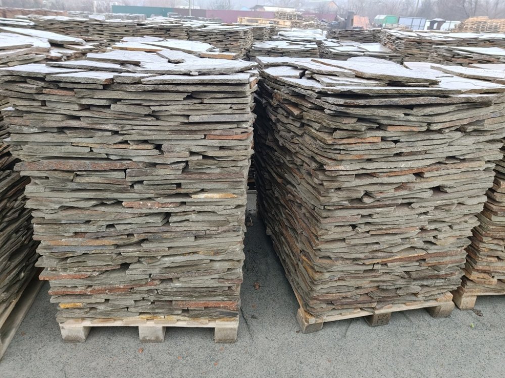 Плитняк песчаник серо-зелёный для облицовки цоколя, отмостки 20-25 мм